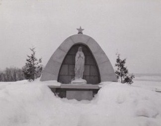Monument à la Vierge, appelé communément la « grotte » (photo datant de 1955). © Coll. Madeleine Genest Bouillé.