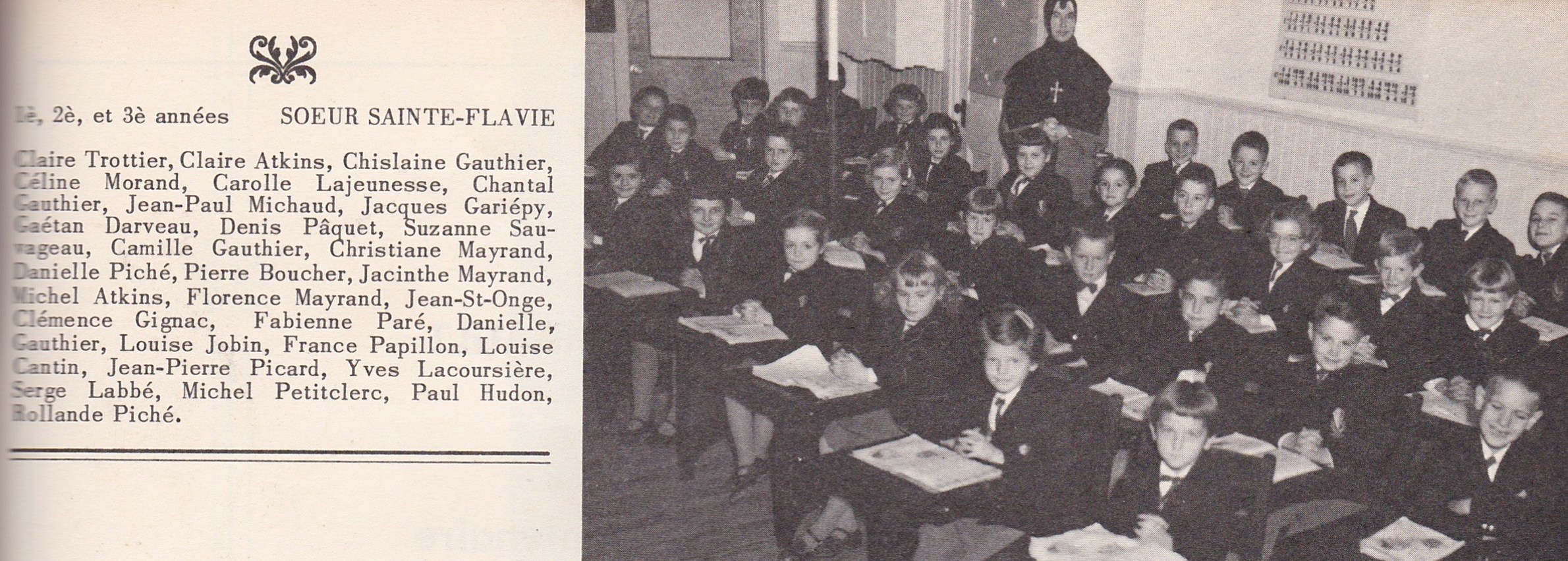 Dès le début de décembre, nous rêvions déjà aux vacances de Noël! Deux semaines de congé, ça mérite le nom de vacances. La longueur de ce congé était sensiblement la même que maintenant, sauf que comme la fête des Rois, le 6 janvier, était « fête d’obligation », c’était considéré comme un dimanche. Alors l’école ne recommençait jamais avant le 7 janvier. Tout comme pour les écoliers d’aujourd’hui, on trouvait que le congé des Fêtes était bien trop court. Lors des Jours Gras, il n’y avait pas de congé, mais le Mardi Gras, on se costumait après l’école et on allait chez les voisins faire cueillette de bonbons. Mais c’était surtout les adultes qui, en soirée, fêtaient le Mardi-Gras, costumés et déguisés… fête qui devait cesser à minuit tapant, puisque le lendemain c’était le mercredi des Cendres! Avec le Carême, nous entrions dans la plus longue période de l’année sans congé. Les congés de tempête étant inexistants, nul besoin de dire que l’hiver était long, long, long! Qu’est-ce qui se passait d’après vous quand il y avait une tempête? Les professeurs des écoles, avaient, soit un logement dans l’école même, ou encore ils demeuraient dans le voisinage de l’école. Les religieuses vivaient dans leur couvent. Les jours de mauvais temps, les professeurs enseignaient avec les élèves qui étaient présents, en évitant de donner des travaux importants, ce qui aurait eu pour effet de pénaliser les absents. Pour fermer une école, ça prenait toute une tempête!