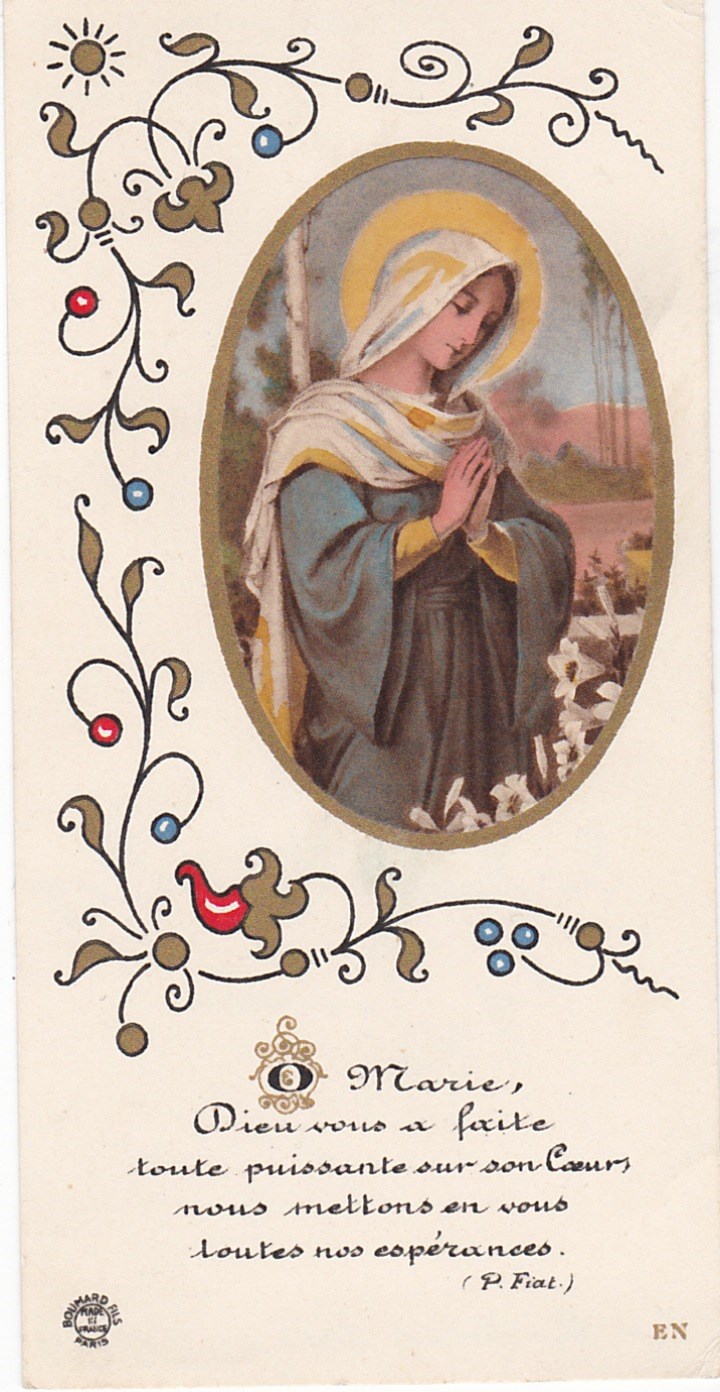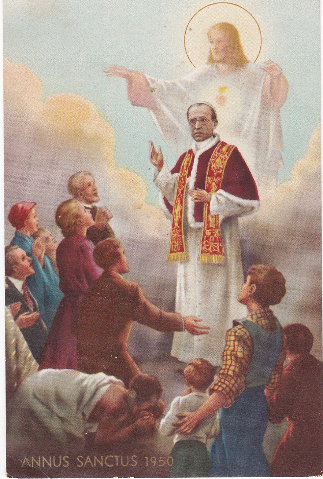 IMG_20160305_0003L’année 1950 avait été proclamée « Année Sainte » par le Pape Pie XII. Évidemment il y avait profusion d’images pieuses à l’effigie de ce Pape, qu’on disait « Pape de la Paix ». Jusqu’en 1953, ou même 54, j’ai reçu plusieurs de ces images avec l’inscription « Annus Sanctus 1950 ». Les religieuses n’étaient pas avares de récompenses et d’encouragement, des images, on en recevait! Images du Sacré-Cœur, de Marie, avec ou sans son enfant Jésus, des anges gardiens et tous les saints du ciel… J’en ai une belle collection! C’était surtout en français que j’en récoltais le plus. Détail qui a son importance, il y avait plusieurs formats d’images, les plus grandes étant environ de 4 pouces par 6 pouces.