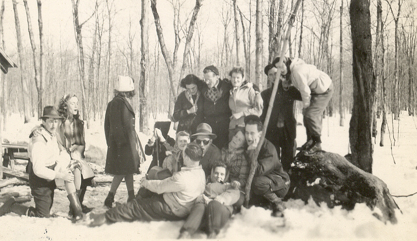 La belle jeunesse de Deschambault, en 1944. Cette photo comme plusieurs de la même époque, me vient de Marie-Paule Laplante, fille des précédents, qui a demeuré à Trois-Rivières après son mariage en 1951. La fête avait lieu à la sucrerie de la famille Bouillé, étant donné que Marie-Paule était l’amie de Marie-Claire Bouillé, la deuxième fille de la famille de mon époux. D’ailleurs je reconnais quelques membres de cette famille, ainsi que Rolande Paré, fille de Louis. Quand je cherche une ou l’autre photo ancienne, je m’arrête toujours sur celle-ci. Le photographe qui a croqué cette scène a sans le savoir fixé dans le temps une image qui raconte un moment de vrai plaisir! C’est l’une de mes photos préférées.