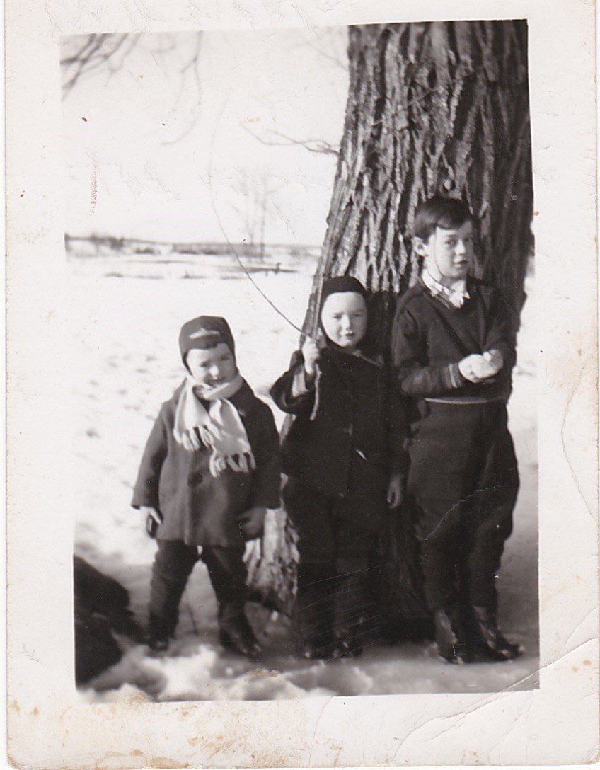 Derrière cette photo, maman avait écrit « Le printemps est arrivé, mars 1950 ». C’était le premier printemps où nous demeurions dans la maison de la rue Johnson. Les deux jeunes, Georges et Fernand, portent encore manteau et chapeau d’hiver, mais il devait y avoir des signes de printemps déjà, car Florent ne porte pas de manteau et il est nu-tête. Florent était le météorologue de la famille. Dans les dernières années où il vivait, je lui avais rappelé cette photo et il m’avait confirmé que le mois de mars de cette année-là était particulièrement doux. Et si Florent l’a dit… c’est parce que c’était vrai!