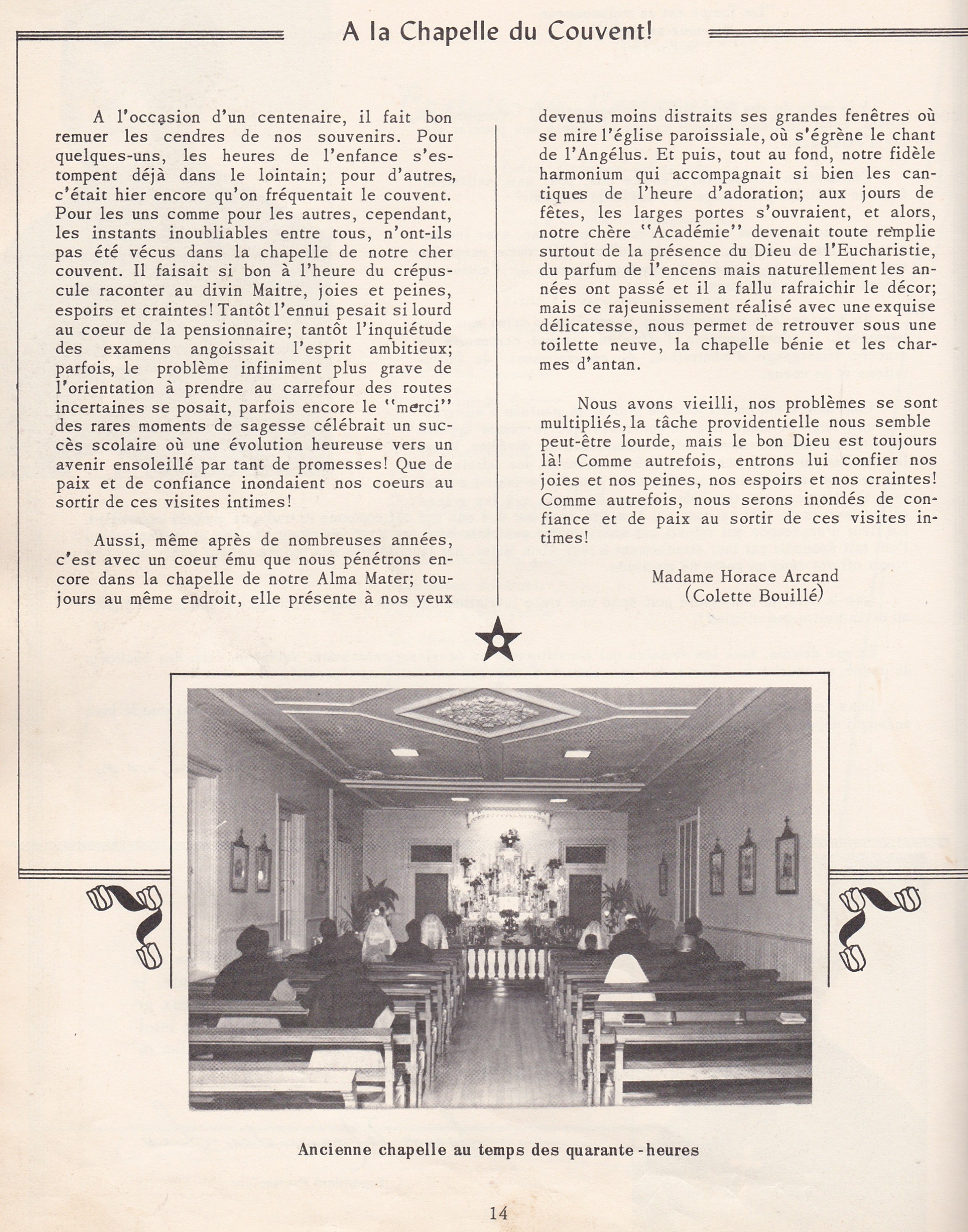 Extrait chapelle Centenaire du couvent Deschambault 1961