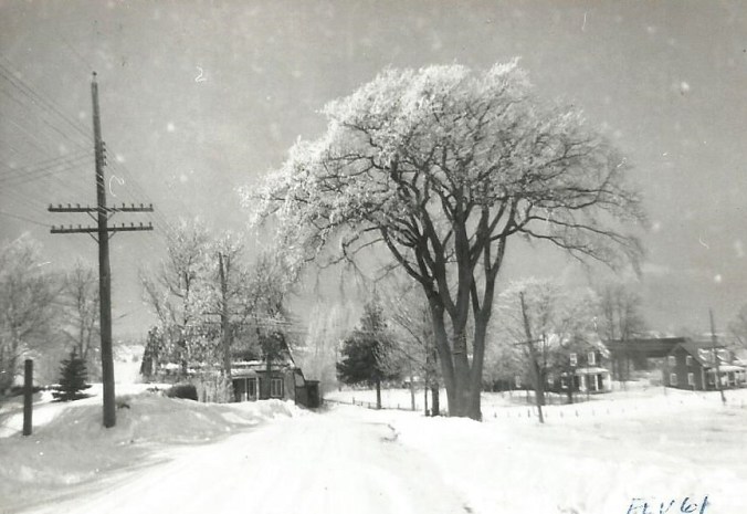 Même s’il a commencé tôt, j’ai bien l’impression que cet hiver n’a pas envie de lâcher prise, il faudra s’y résigner! Je me rappelle, quand on était jeunes, on ne la trouvait jamais trop longue cette saison! On s’amusait avec peu de choses. Notre vieille route, qui s’appelait encore « la route à Morin », longeait un côteau, pas bien gros, juste assez pour qu’on y glisse avec tout ce qui nous tombait sous la main. C’était cette même côte, à l’ombre du gros orme où, en été, on jouait à « En bas de la ville »… Elle n’existe plus, on a rempli le champ marécageux où parfois, les soirs d’hiver, quand on ne se couchait pas à « l’heure des poules », on pouvait voir rôder furtivement un renard; si je me souviens bien, quelqu’un dans le coin possédait un poulailler… Enfin, un bon jour, le propriétaire de ce terrain inutile y a construit quelques maisons.