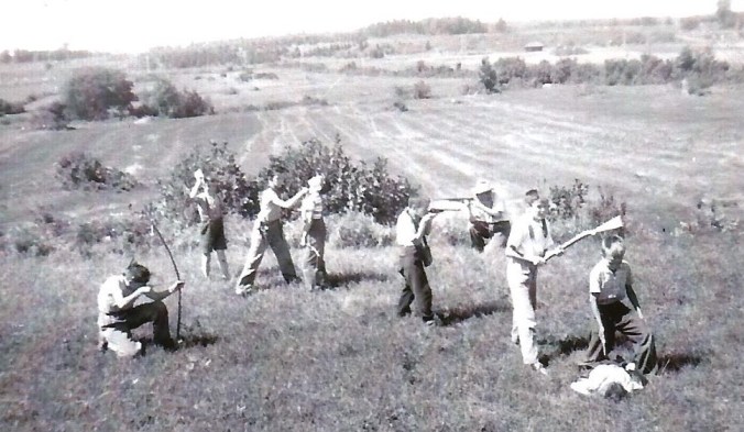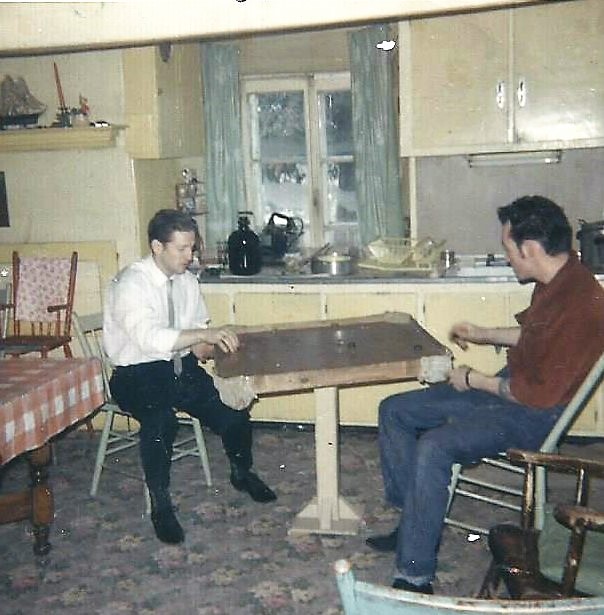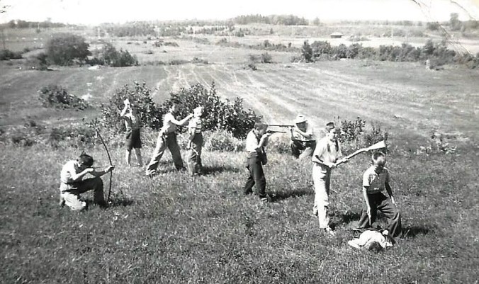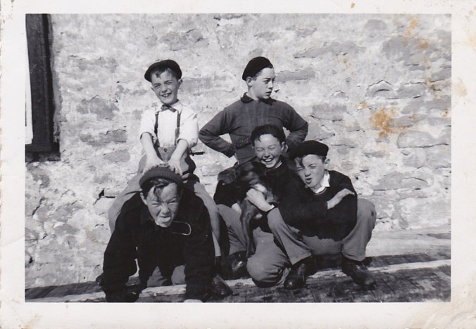 Mes frères Florent et Roger, et moi, vers 1955. La maison à l’arrière plan est celle de feu Jean-Yves Vézina